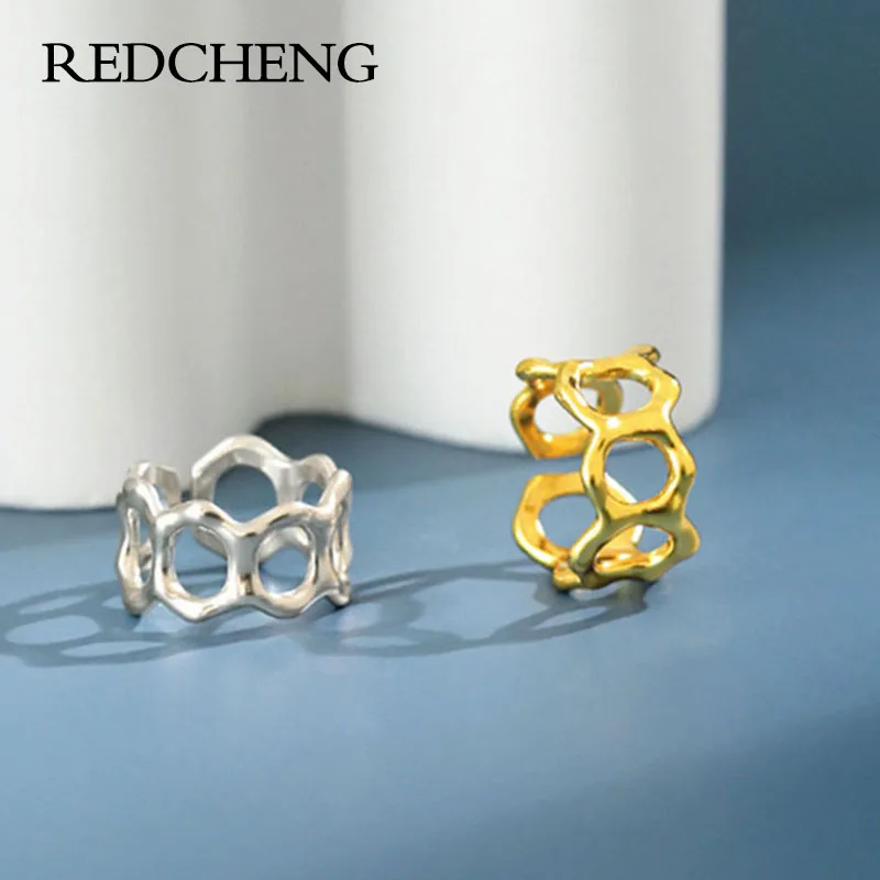 REDCHENG Стерлинговое Серебро 925 пробы, вогнутые выпуклые поверхности, ажурные кольца для женщин, модные нестандартные узоры, свадебные украшен...