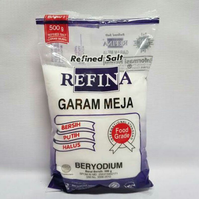 Refina adalah garam konsumsi hasil teknologi pemurnian dengan standard international diproses secara kristalisasi dengan menggunakan mesin modern berteknologi tinggi. Dapat digunakan karena lebih sedikit kotoran/cemarannya. OTHER DETAILS : Dapat digunakan untuk memasak atau ditaburkan pada makanan.