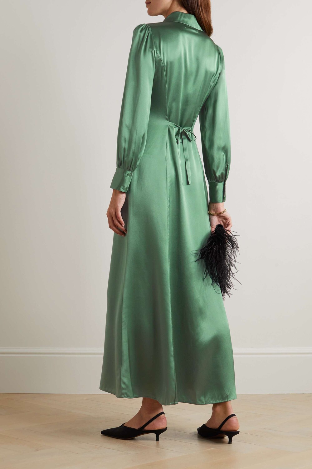 REFORMATION платье-рубашка макси Catalina из шелкового атласа, зеленый