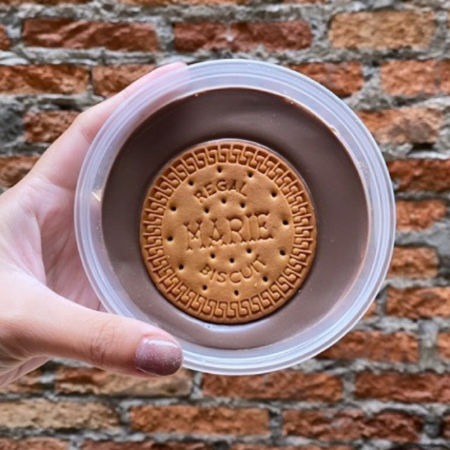 Soft Egg Pudding + Regal Crumbs + Soft Cream + Chocolate Sauce + Regal Biscuit