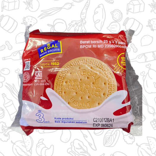 Biskuit Marie Regal dengan berat 25gr.