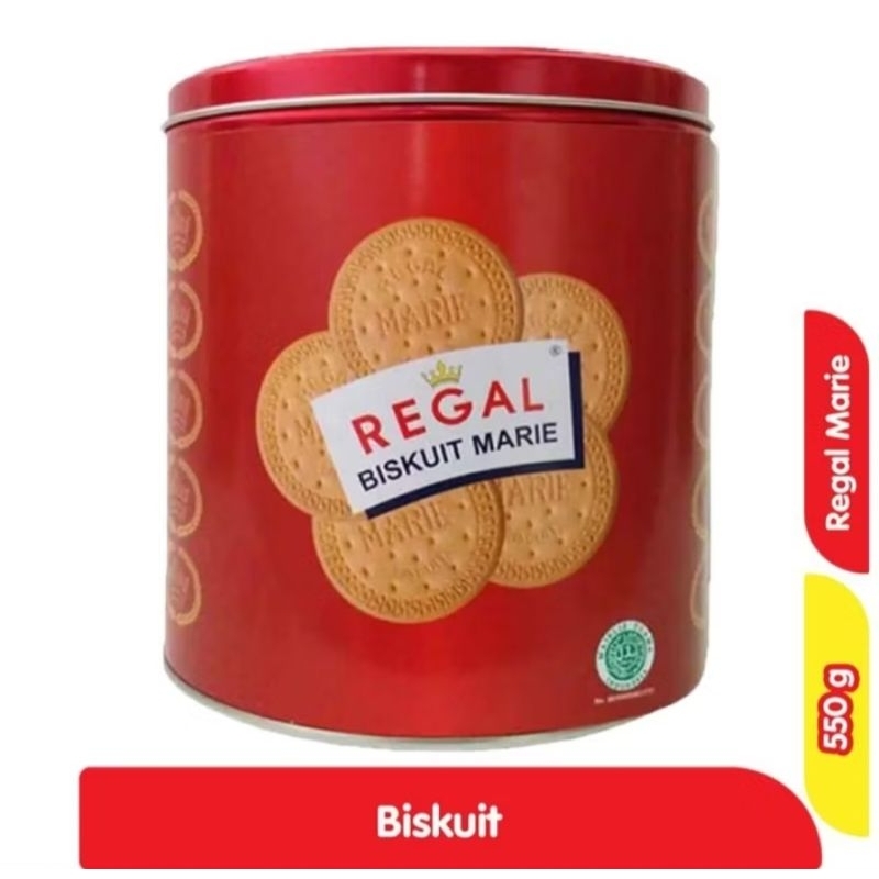Biskuit Marie Regal 550 gr dikemas dalam kaleng