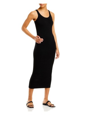 REMAIN Женское черное эластичное облегающее платье миди без рукавов с круглым вырезом, Черный