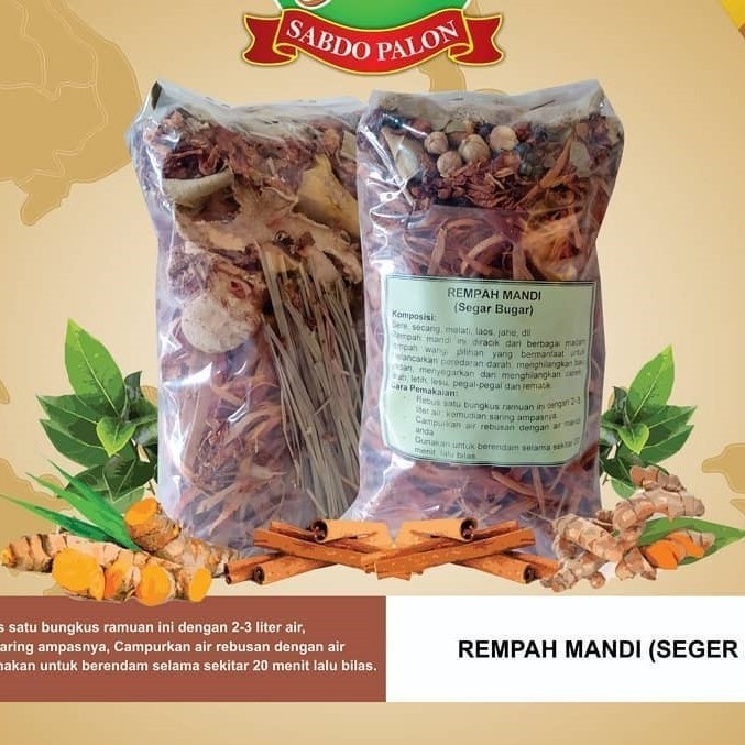 Rempah mandi ini ditacik dari berbagai macam rempah wangi pilihan yang bermanfaat untuk melancarkan peredaran darah, menghilangkan bau badan, menyegarkan dan menghilangkan capek, lelah, letih, lesu, pegal-pegal dan rematik