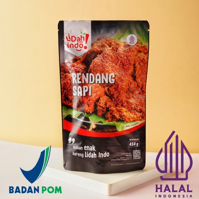 Rendang Sapi Lidah Indo Siap dimakan, sudah matang - higienis , dibuat dengan rasa original rumahan - awet tp tanpa pengawet - bahan berkualitas - mudah di nikmati - Kemasan Vacum Berat 450gr Kurang lebih 9 potongan daging sapi (bukan sengkel/urat/lidah ya)