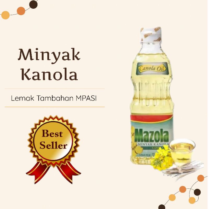 MAZOLA CANOLA OIL Merupakan sumber lemak Tak jenuh tunggal yang dapat digunakan sebagai tambahan mpasi baik untuk menggoreng/dicampur langsung ke makanan