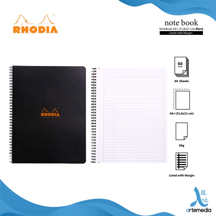 [RESTOCK] Buku Catatan Rhodia A4 Plus Wirebound Coated Card Cover Notebook - LINED BLACK