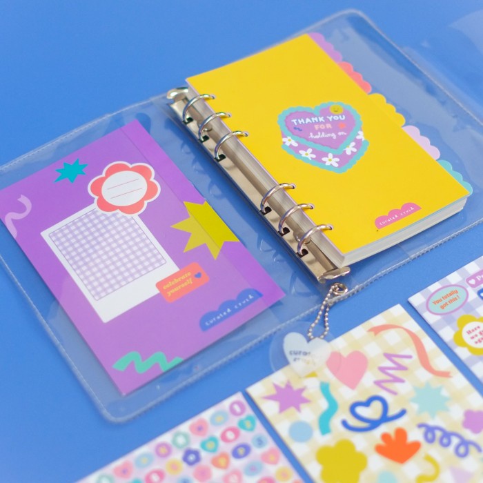 Specs: Made from Transparent PVC, Template Cover, 5 Dividers, Dotted Bookpaper Sheets, Sticker Set (3 Sheets, A6 Size).