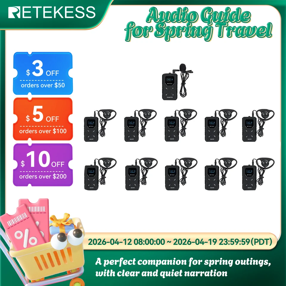RETEKESS TT117 FM Tour Guide System Transmitter Receiver for Museum Church Conference Meeting Factory Training 72-76MHz