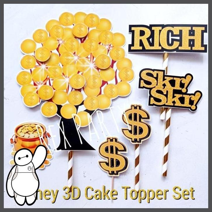 Money Cake Topper/Cake Topper Dollar/Toper Pohon Uang/Topper Rich/Gold