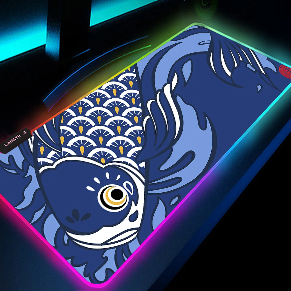 RGB коврики для мыши с подсветкой в виде рыбы, синий коврик для клавиатуры, настольный игровой коврик для мыши, коврик для компьютера, светящийся коврик для мыши, коврик для мыши