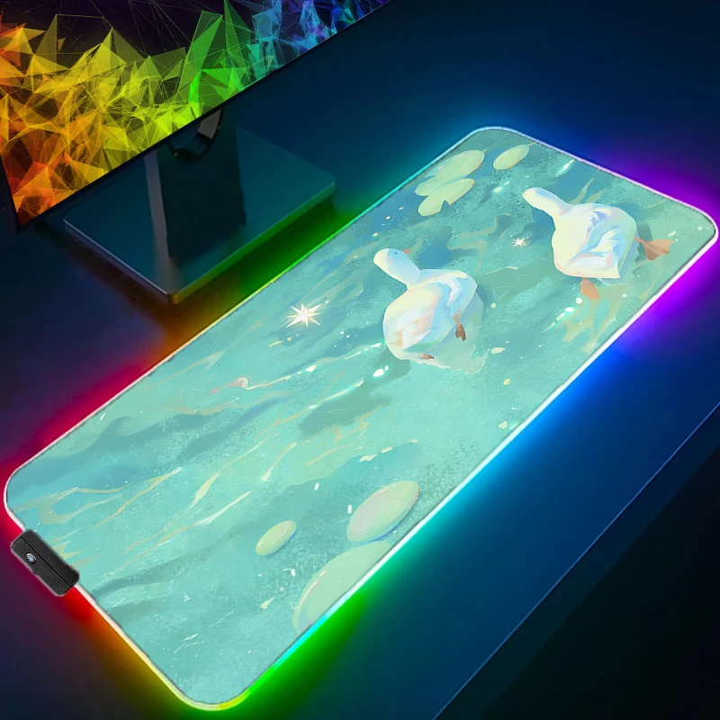 RGB LED Mouse Pad Extended Gaming Duck Mousepad With Stitched Edges Desk Mat Non-Slip Base Computer Keyboard Pad For Laptop