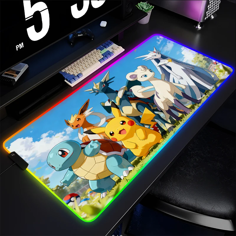 RGB Large Rubber Mouse Pad P-Pokemon Gamer Keyboard LED Mousepad Anime Computer Desk Mat Gaming Pad Backlight Mouse Mats For LOL