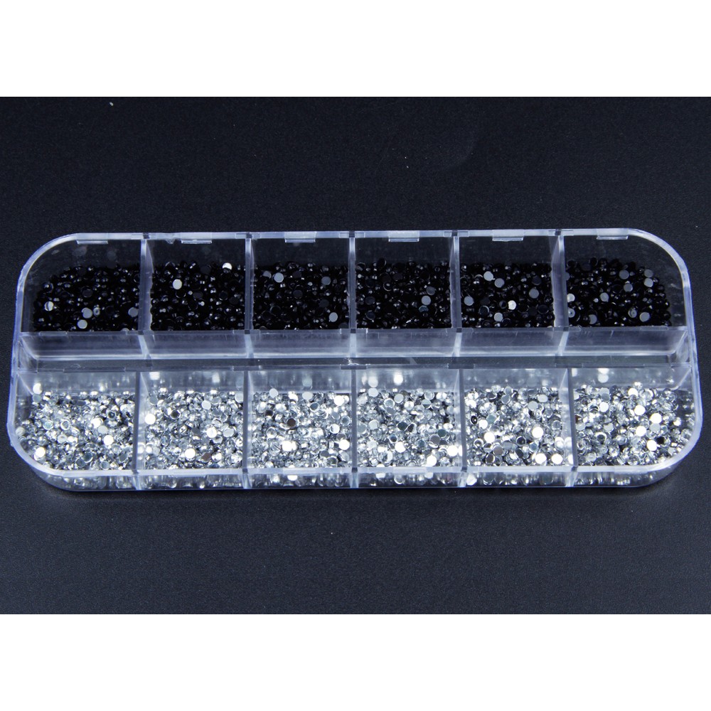 Black and Clear rhinestones with flat silver bottom