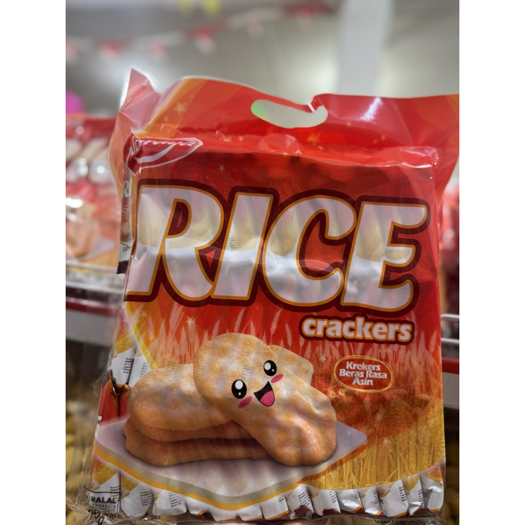 RICE CRACKERS adalah cemilan yang terbuat dari beras atau tepung beras. Cemilan ini umumnya memiliki tekstur renyah dan memiliki rasa gurih asin serta sedikit manis. Rice Crackers merupakan cemilan sehat untuk segala usia, bisa menjadi cemilan saat santai, berpergian, atau teman minum teh atau kopi.