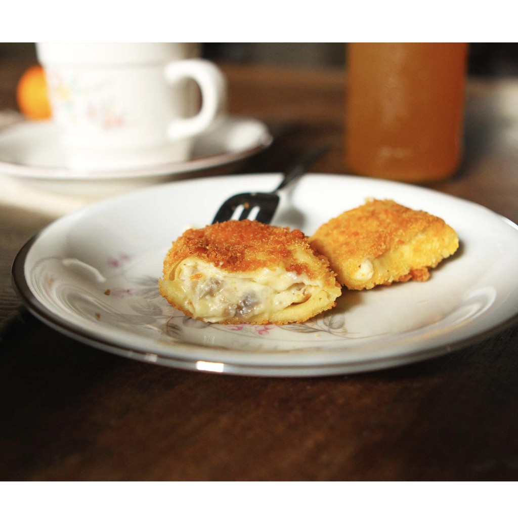 Risoles homemade dengan isian potongan ayam yang dihaluskan, jamur champignon dan cream cheese resep rahasia khas Rasa Rumah.