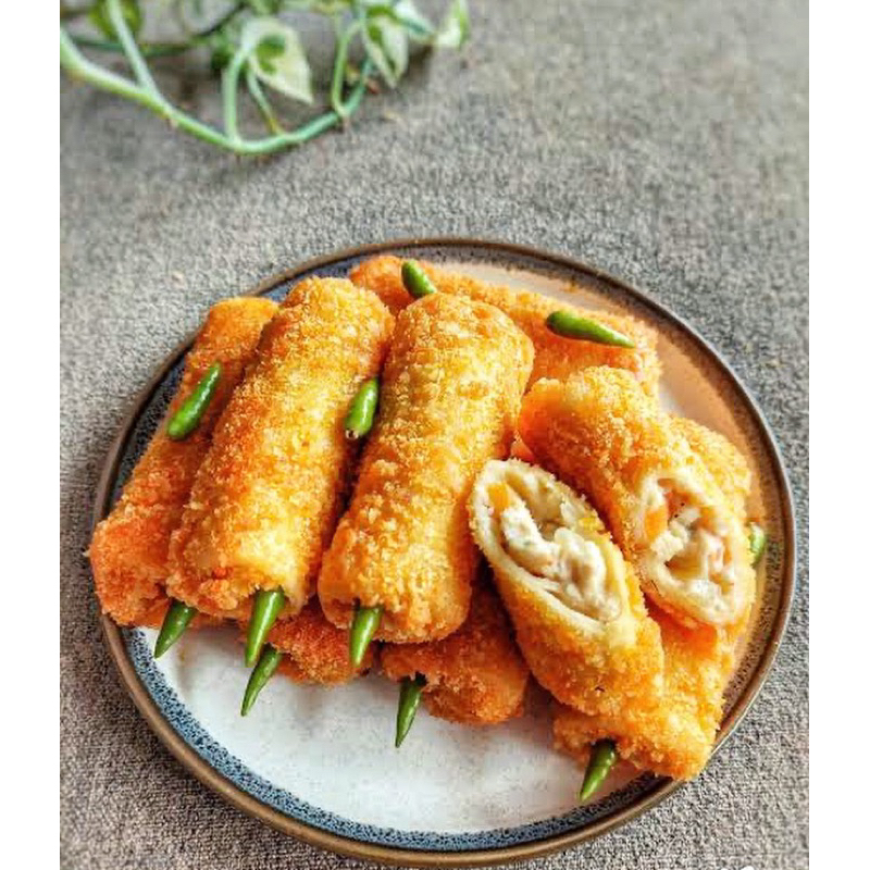 isi risoles rougut sangat lembut karena dibuat dengan susu pilihan,keju,serta sayuran dan ayam