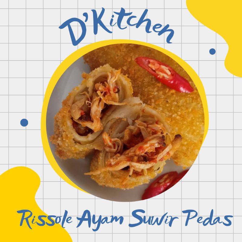 Risoles dengan isian ayam suwir pedas mantap dengan kulit dadar yang di lapisi tepung panir yang renyah setelah di goreng dan saat dimakan