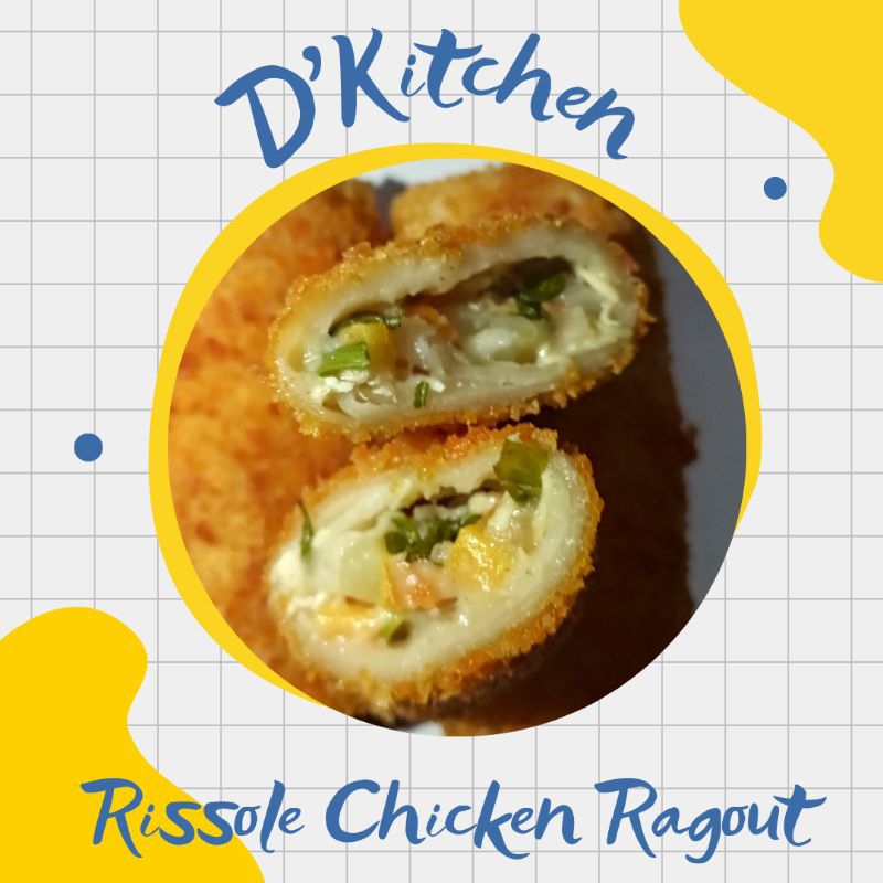 Risoles dengan isian ayam cincang dan sayuran dicampur dengan susu yang creamy dibalut dengan kulit dadar yang di lapisi tepung panir yang renyah setelah di goreng dan saat dimakan