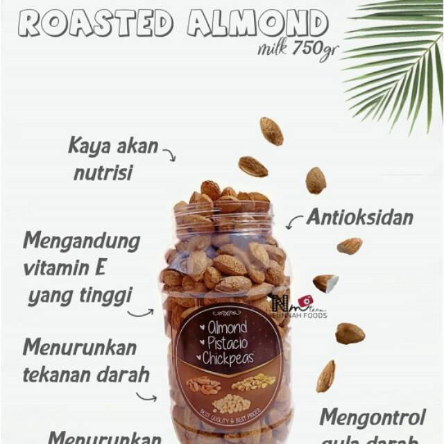 Almond panggang ini memiliki rasa yang khas, manis dan gurih berpadu, teksturnya pun sangat renyah.