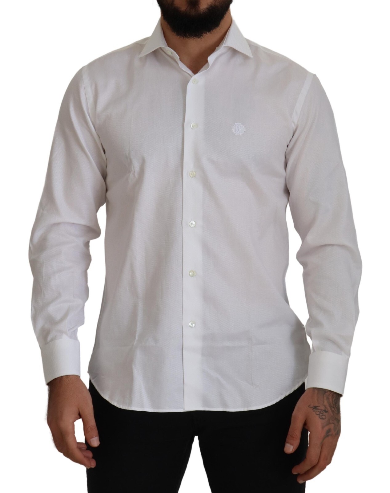 ROBERTO CAVALLI Рубашка приталенного белого хлопкового делового платья 39/US15,5/ Рекомендуемая розничная цена 250 долларов США, Белый