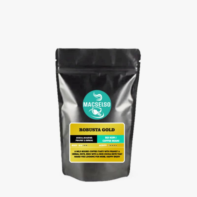 MACSELSO ROBUSTA GOLD merupakan kopi ROBUSTA terbaik yang dikelola secara profesional khusus menghasilkan rasa yang berkualitas. memberikan citarasa aroma sangrai, kacang dan sereal yg berpadu menjadi satu dan diakhiri citarasa coklat yang menenangkan. siap untuk menemani hari-hari anda.