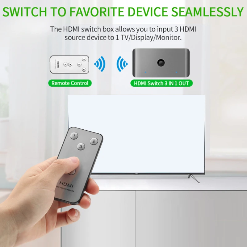 ROCKETEK KVM Switch Box 3 Port 3 In1Out HDMI Switcher 4K 60Hz ,with Infrared Remote Control,for Keyboard Mouse Printer Monitor