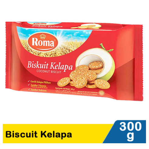Roma Biskuit Kelapa 300 g adalah biskuit kelapa dengan rasa renyah dan gurih yang dihasilkan dari kelapa pilihan. Rasa kelapa asli dari Roma biskuit ini telah menjadi kesukaan banyak orang, baik di Indonesia atau pun di berbagai negara lain. Diperkaya dengan vitamin B1, B2, B6, B12, dan E, serta kalsium, biskuit Roma Kelapa ini akan menjadi teman biskuit kelapa yang sehat untuk Anda. Jalani hari-hari bersama kerenyahan biskuit Roma Kelapa, teman yang baik untuk Anda.