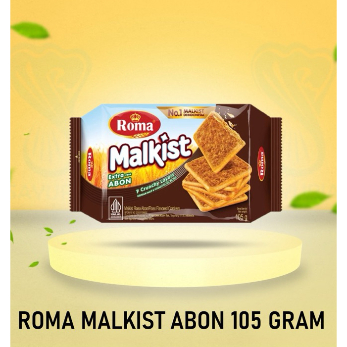 Roma Cracker Malkist Abon adalah biskuit cracker renyah dengan taburan abon yang gurih, diperkaya dengan vitamin B kompleks. Biskuit ini memiliki rasa gurih dan manis yang unik karena dipanggang dengan taburan abon dan gula, kemudian dicetak dalam bentuk kotak tipis untuk menghasilkan tekstur renyah.