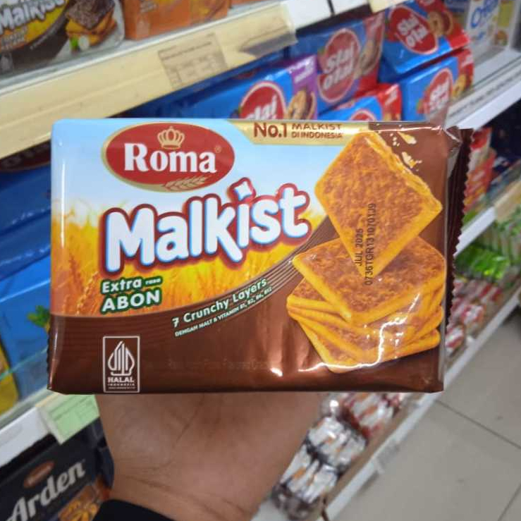 ROMA Malkist Abon Crackers Biskuitmerupakan biskuit dengan aroma yang khas dari Roma. Biskuit dilapisi dengan abon untuk memberikan energi lebih pada tubuh Anda. Nikmati biskuit bersama teh di sore hari dapat mencerahkan hari Anda. Dilengkapi dengan Vitamin B kompleks.