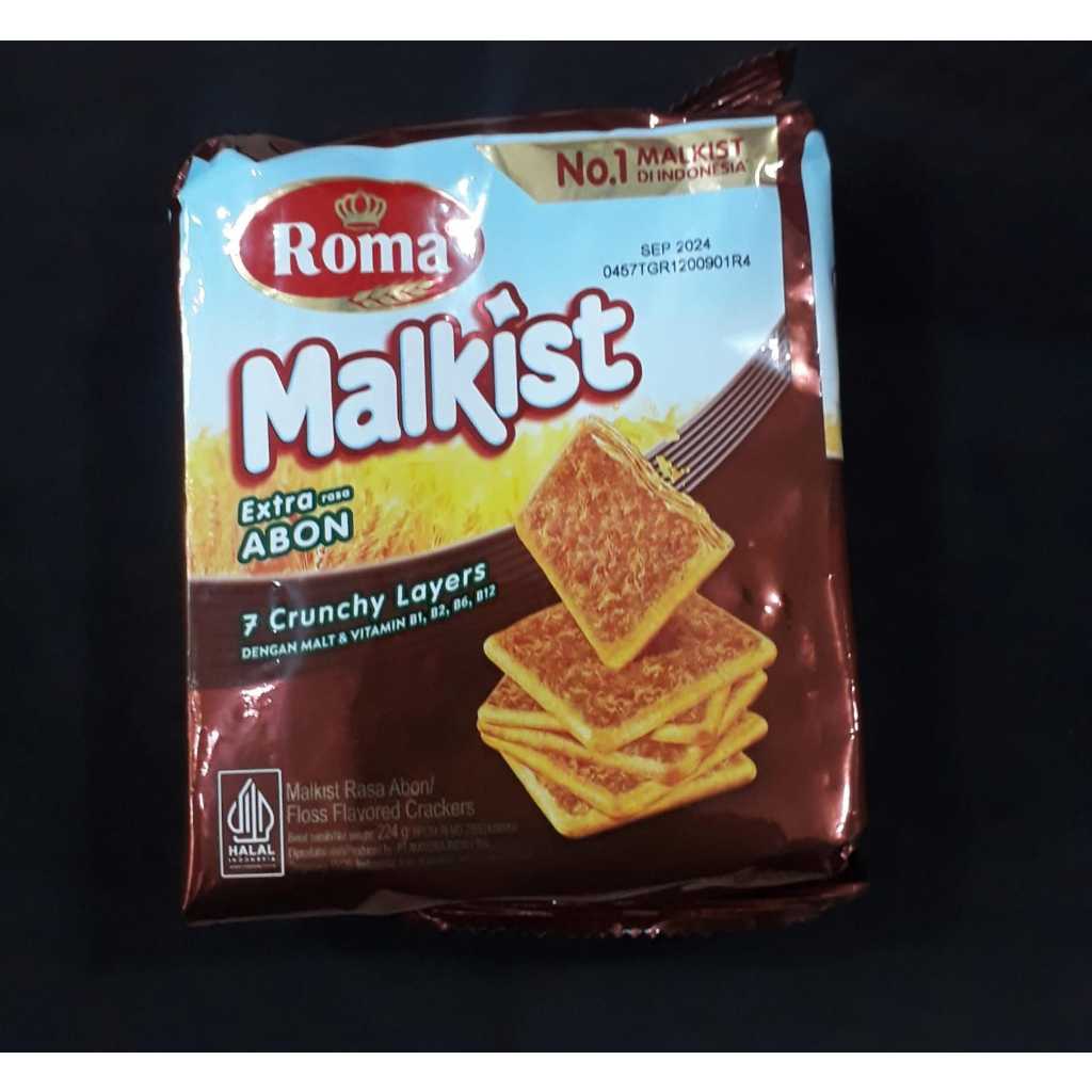 Roma Malkist Abon adalah varian crackers dari brand Roma produksi PT. Mayora Indah Tbk. crackers renyah dengan taburan abon gurih yang nikmat dengan kandungan vitamin B1, B2, B6, B12 yang memberikan nutrisi dan energi untuk tubuh. Roma Malkist Abon cocok dinikmati saat minum teh bersama keluarga atau teman.