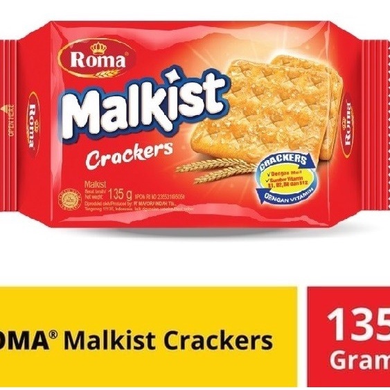 Roma Malkist Crackers merupakan biskuit dengan aroma yang khas dari Roma. Biskuit dilapisi dengan gula yang dilelehkan untuk memberikan energi lebih pada tubuh Anda. Nikmati biskuit bersama teh di sore hari dapat mencerahkan hari Anda. Dilengkapi dengan Vitamin B kompleks. Kemasan 135 gr.