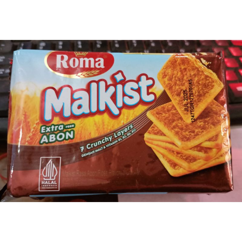 ROMA Malkist abon 105g Roma Malkist Crackers merupakan biskuit dengan aroma yang khas dari Roma. Biskuit dilapisi dengan abon untuk memberikan energi lebih pada tubuh Anda. Nikmati biskuit bersama teh di sore hari dapat mencerahkan hari Anda. Dilengkapi dengan Vitamin B kompleks.