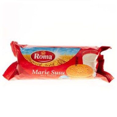 Roma Marie Susu Biscuit 115g Biskuit Marie berkualitas dari Roma Terbuat dari susu murni pilihan Mengandung protein, kalsium, serat & kaya vitamin dan Tersedia dalam kemasan isi 115g.