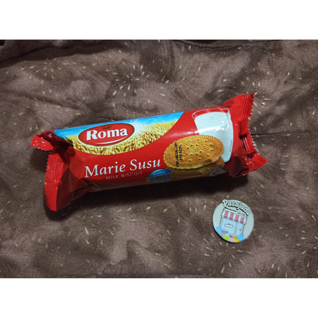 Roma Marie Susu Biscuit 115g Biskuit Marie berkualitas dari Roma Terbuat dari susu murni pilihan Mengandung protein, kalsium, serat & kaya vitamin dan Tersedia dalam kemasan isi 115g.