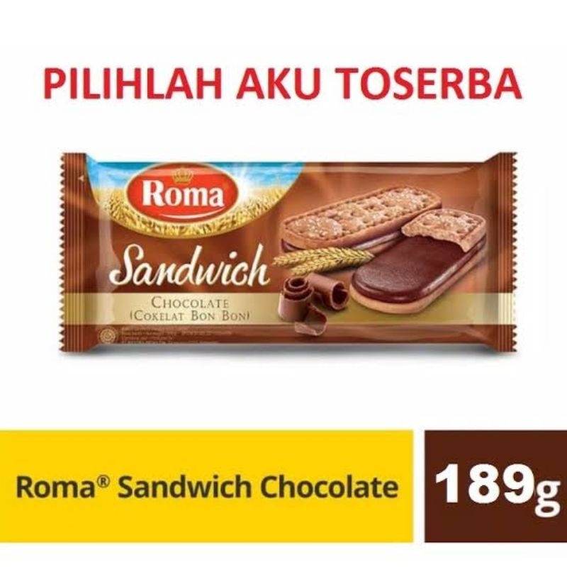 Roma Sandwich Coklat merupakan biskuit cokelat renyah dengan taburan gula, serta coklat yang meleleh di mulut. Biskuit coklat ini terbuat dari bahan bermutu tinggi dan diproses secara higienis sehingga aman untuk dikonsumsi.