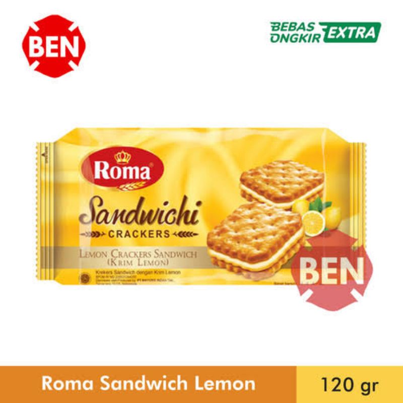 ROMA SANDWICH CRACKER LEMON 120GR BISKUIT RASA LEMON ROMA BISKUIT SELAI LEMON SLAI LEMON ROMA