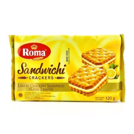 Salah satu lini produk biskuit dari brand Roma produksi PT. Mayora Indah Tbk. Bermain di segmen bawah dgn harga yg relatif murah, namun dgn kualitas tinggi khas produk2 Roma. Raksasa biskuit Indonesia ini menciptakan sejenis varian krekers sanwich dgn isi krim lemon ditengahnya. Biskuit yg renyah dgn kualitas baik, dan krim lemon yg enak. Netto produk 114 gr, cukup untuk sekali ngemil praktis. Beratribut lengkap BPOM RI dan Halal MUI.