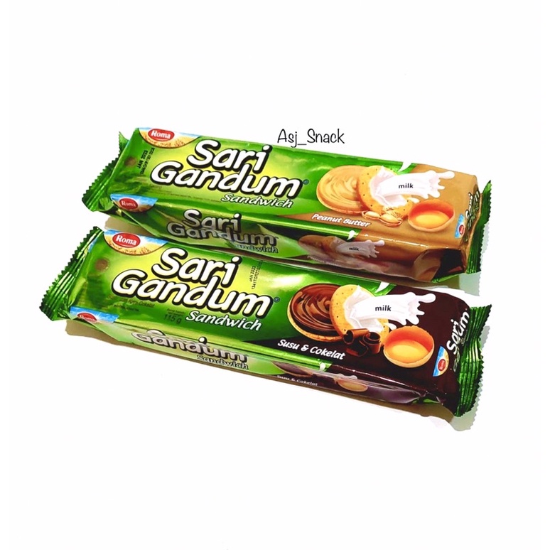 roma sari gandum cokelat dan peanut butter merupakan biskuit sandwich yang terbuat