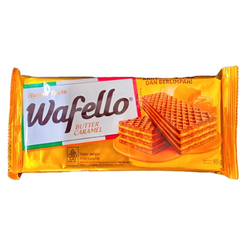 Wafello Caramel 95g adalah wafer renyah berlapis krim karamel yang lezat. Produk ini memiliki tekstur garing dengan lapisan krim yang manis dan creamy, memberikan perpaduan rasa yang sempurna di setiap gigitan.