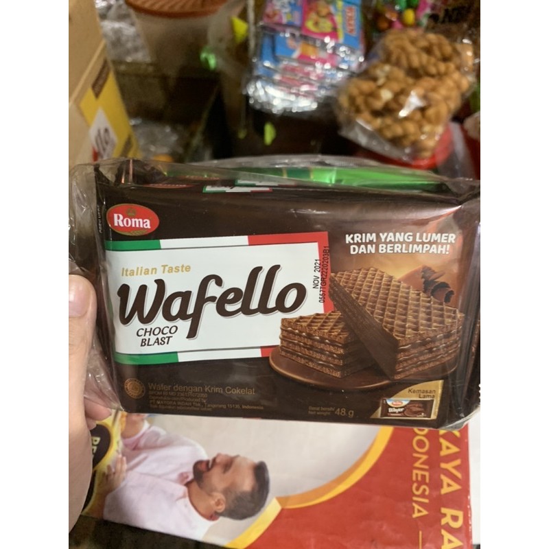 ROMA WAFELLO COKLAT 1 PAK ISI 10 PCS GRATIS 2 BUNGKUS KOPI GILUS