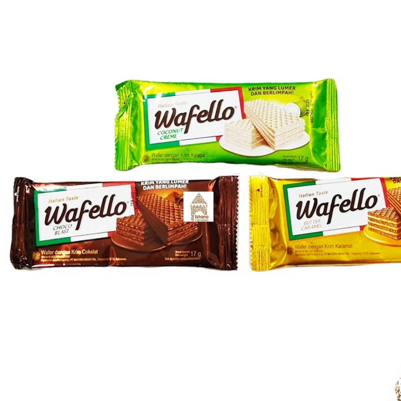 Roma Wafello 17g (10 pcs/pack) adalah wafer varian baru yang diproduksi oleh PT. Mayora, Tbk. Wafello merupakan wafer berlapis cream coklat yang nikmat dan berlimpah dengan citarasa Italia. Ideal dinikmati bersama hidangan teh, susu maupun kopi saat santai. Wafello Delizioso.