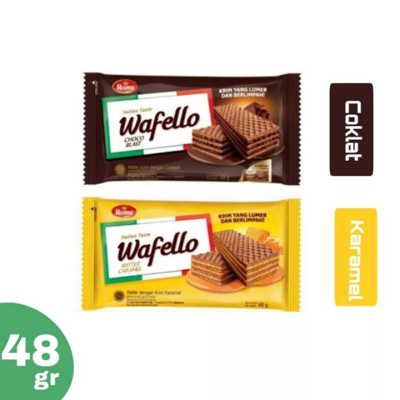 ROMA Wafello Rasa Cokelat / Caramel 48 gram....