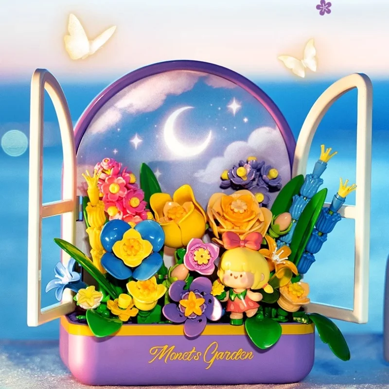 ROROJUMP Monet Garden Сборка Строительный блок Настольные украшения Вечный цветок Коллекционная модель Милая игрушка Подарок на день рождения