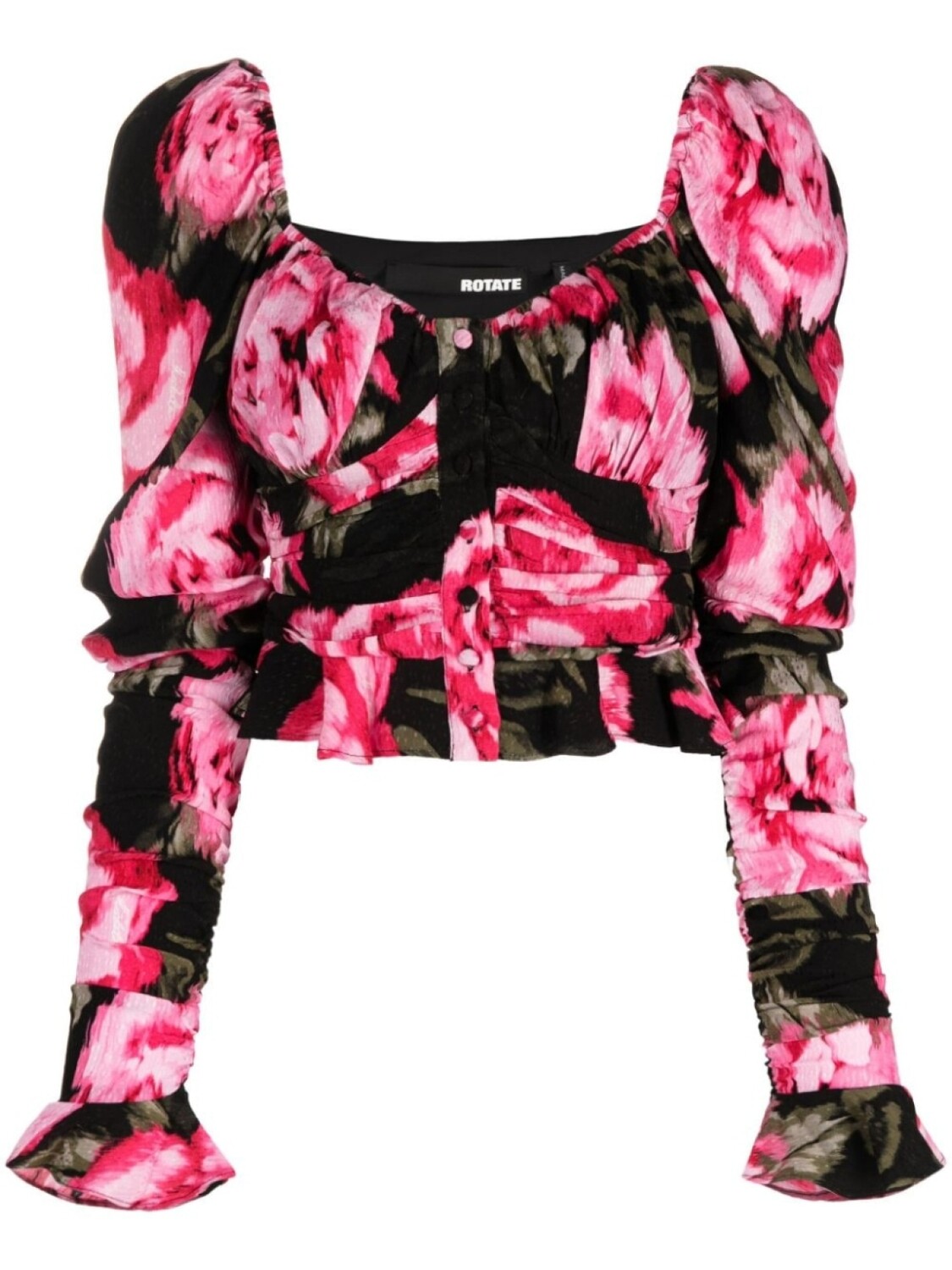 ROTATE BIRGER CHRISTENSEN жаккардовая блузка с цветочным узором, черный
