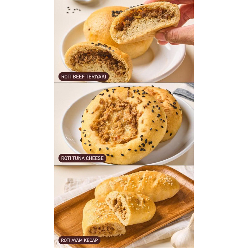 ADONAN ROTI TIDAK MENGANDUNG SUSU DAN PRODUK TURUNANNYA, NAMUN UNTUK TOPPING DAN ISIAN DIBEBERAPA VARIAN MENGANDUNG SUSU DAN PRODUK TURUNANNYA.