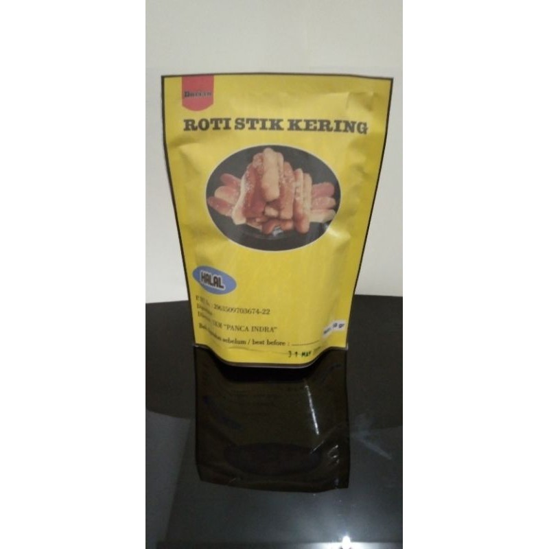 roti stik kering"dengan kemasan standing food,yang moderen dan lebih tahan lama sampai 3 bulan ber izin: I.PRT:2063509703674-22
