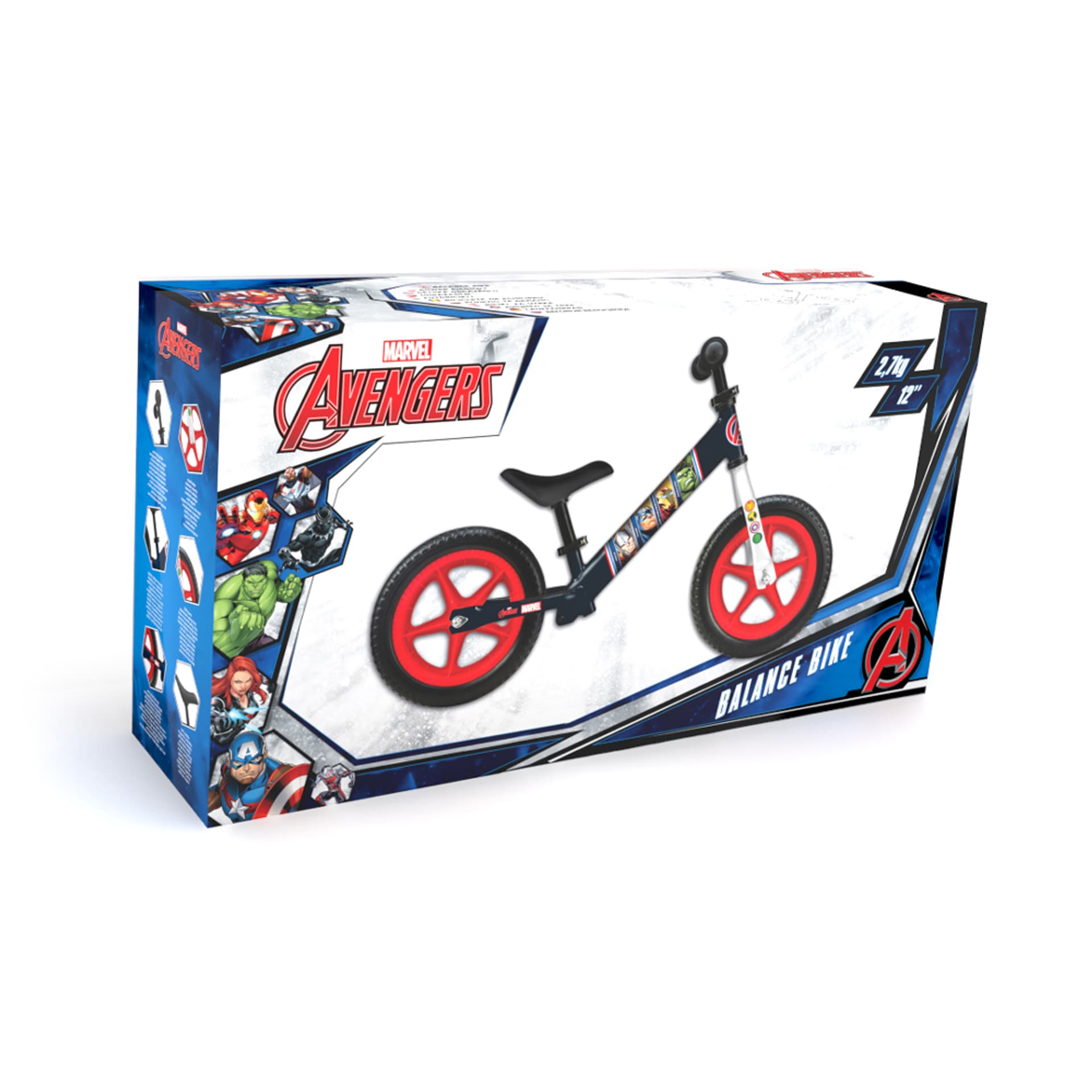 Metalowy rowerek biegowy z motywami przedstawiającymi bohaterów Marvel, przeznaczony jest do zabaw na świeżym powietrzu. Doskonale wpływa na kondycję dziecka, rozwija koordynację ruchową, uczy równowagi, co ułatwi późniejszą przesiadkę na 'prawdziwy' rower lub hulajnogę.Główne cechy rowerka:1. Antypoślizgowe rączki,2. Antypoślizgowy podnóżek,3. Piankowe opony EVA – 12”,4. Miękkie siodełko o regulacji wysokości od 29 do 41 cm,5. Kierownica o regulacji wysokości od 49 do 56 cm,6. Stalowe łożyska,7. Waga rowerka: 2,7 kgPojazd jest rekomendowany dla dzieci o wadze maksymalnej nie przekraczającej 28 kg i wzroście w przedziale 75 – 112 cm.Wymiar opakowania: 58 x 14 x 30,5 cm