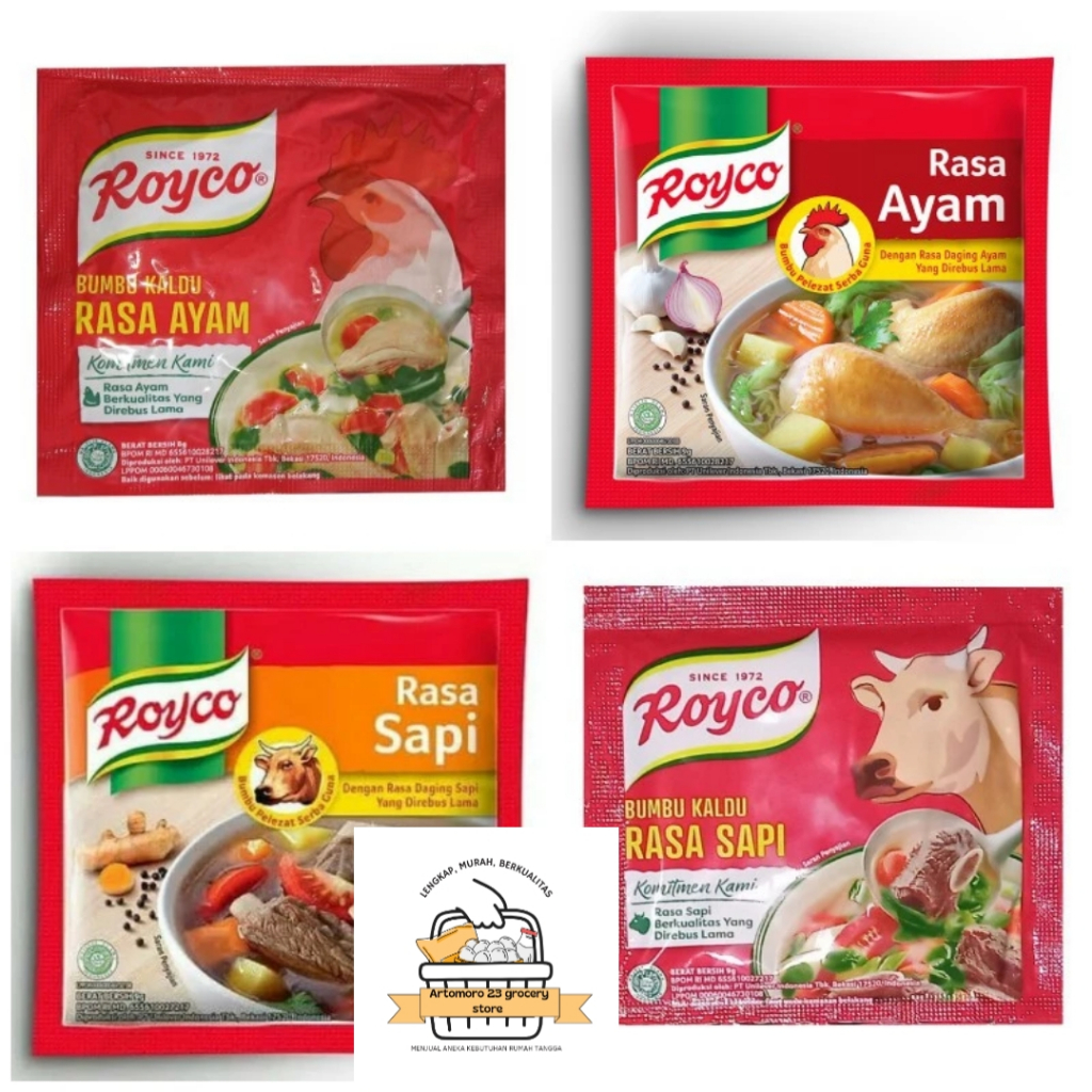 Royco bumbu kaldu yg di olah dari daging pilihan yg mampu melezatkan semua jenis masakan baik itu sayur tumis gulai soto dan masih banyak lagi masakan yg lainnya, membuat masakan menjadi lebih gurih dan lezat