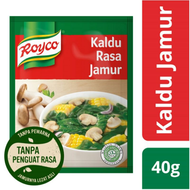 ROYCO Bumbu Kaldu Rasa Jamur 40g merupakan kaldu rasa jamur yang digunakan untuk bumbu tambahan atau penyedap pada aneka masakan. Dengan kaldu ini, masakan Anda akan bertambah nikmat dan lezat. Royco Kaldu Rasa Jamur dibuat dari jamur lezat asli tanpa tambahan penguat rasa dan pewarna. Menambah cita rasa lezat pada aneka masakan.